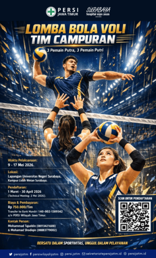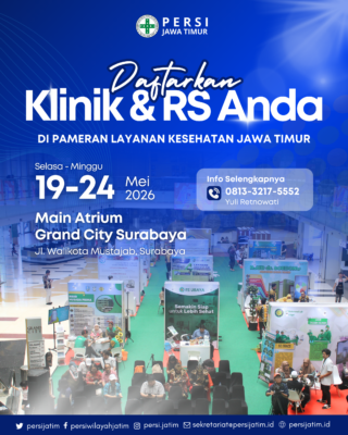 Atas rahmat dan ridho Alloh SWT, Tuhan yang Maha Kuasa, PERSI (Perhimpunan Rumah Sakit Seluruh Indonesia) Wilayah Jawa Timur kembali menyelenggarakan kegiatan rutin tahunan berskala Nasional. Pada tahun 2026 ini, Kegiatan Seminar Nasional Perumahsakitan dan Surabaya Hospital Expo XX dilaksanakan pada tanggal 19 – 21 Mei 2026 yang akan diselenggarakan di Grand City Convex Surabaya.